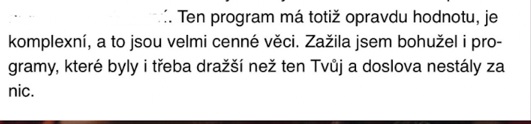 Hodnota programu je přes 166 662 Kč. Tady ti dáme nabombenou cestu za 10% hodnoty, jen za zlomek jako součet 2 konzultací se mou a Sandrou, a vše ti zůstane!
