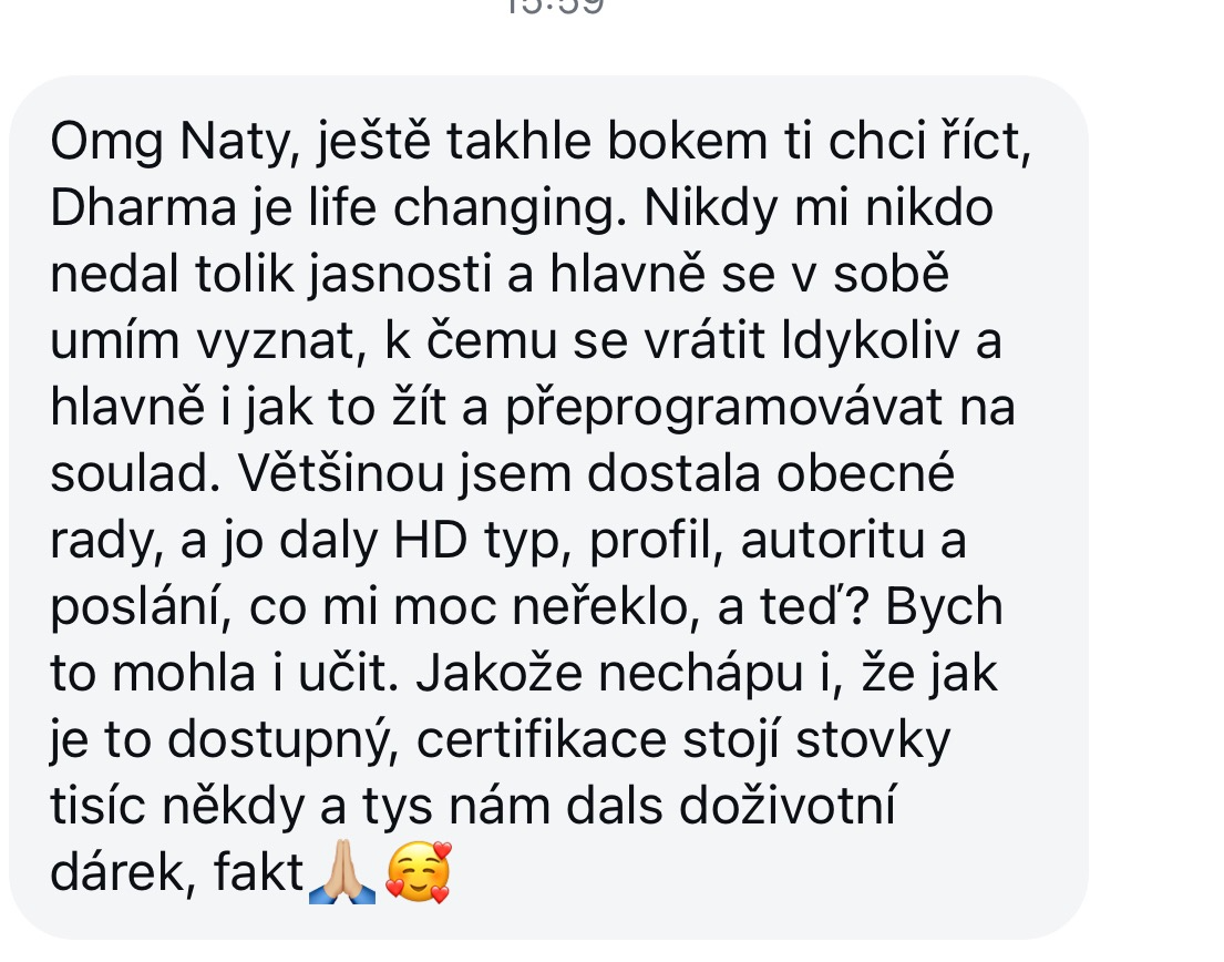 Unikátní 8mi týdenní program, co dává dohromady Human Design, Genové klíče, Astrologii, koučink a somatické praktiky pro odhlení Tvého pravého já, Dharmy, mise, kariéry, Tvé jedinečnosti a prosperity. Tvůj návod na Tebe a TENTO život, předání Tvého poslání a jedinečných kódů pro soulad, prosperitu.