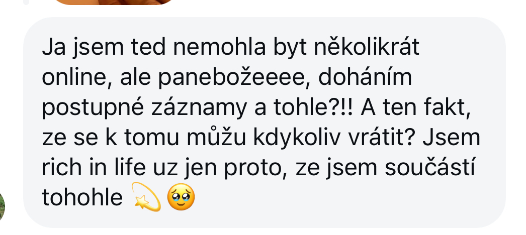 Po zakoupení získáš přístup do členské sekce, najdeš všechny moduly záznamy, podklady, a najdeš tam i zdroje, které budeš používat. Jedeš ti to v souladu s tempem, co ti vyhovuje, přístup máš na vždy.